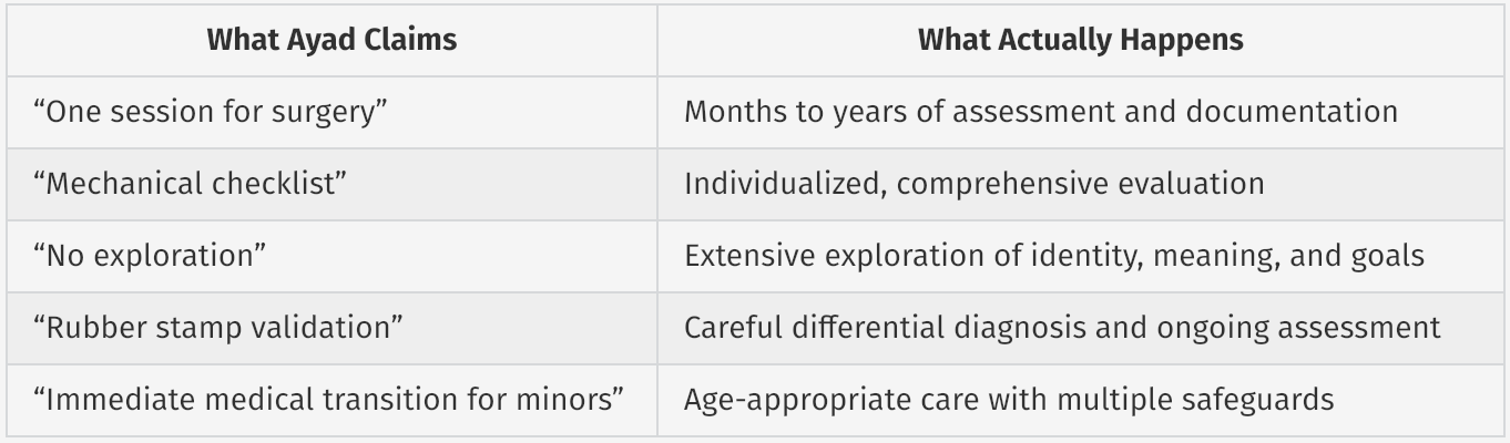 Since Ayad won’t tell you what really happens in gender-affirming care, let’s fill that massive gap with actual facts.