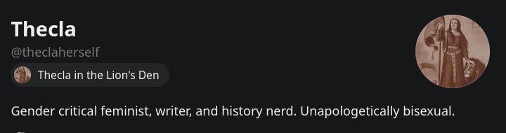 The real Thecla faced actual lions (“wild beasts”). Modern gender critical feminists face… Twitter criticism and academic disagreement. This self-dramatization obscures who holds actual power and who faces real violence.